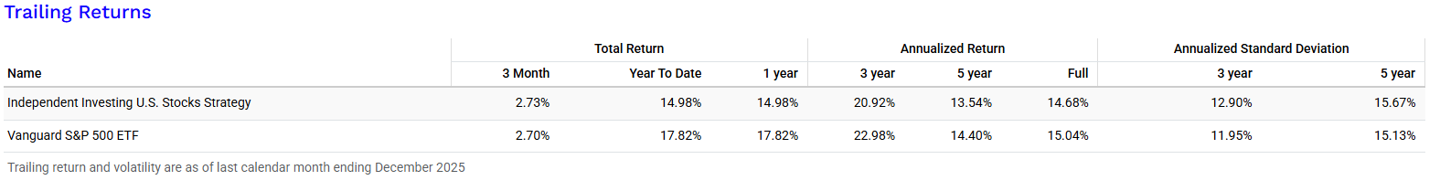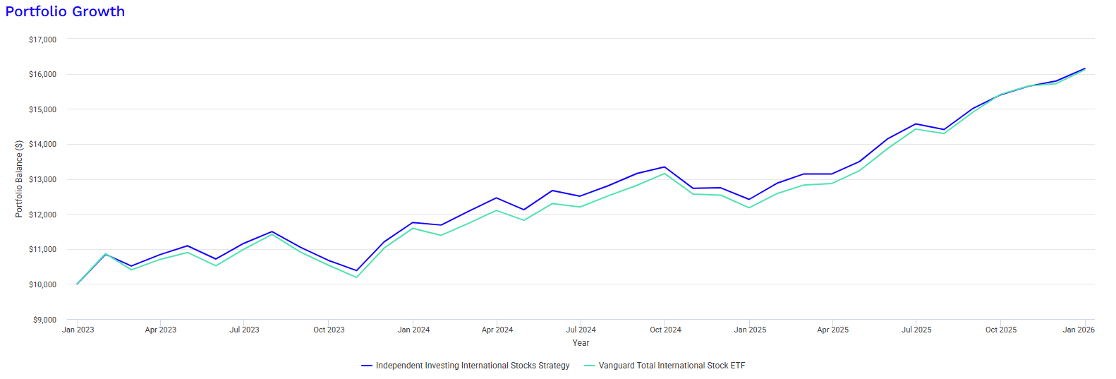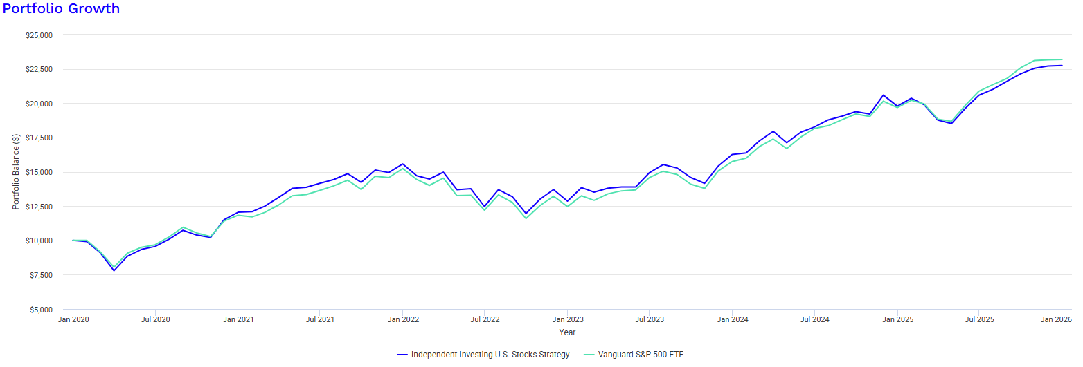 All Independent Investing strategies charts and graphs presented below show examples of a $10,000 investment into the strategy.